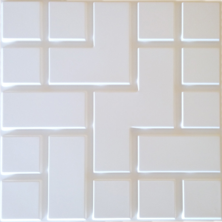 Placas de PVC 3D WALL de 50 x 50 cm para revestir paredes y cielorrasos. Livianas, resistentes, flexibles y de fácil instalación. Aptas para interiores y exteriores. En color blanco mate, listas para usar o pintar. Se adhieren con silicona pintable o adhesivo de contacto. 1 M2 = 4 placas. Cajas de 3 M2 (12 placas).