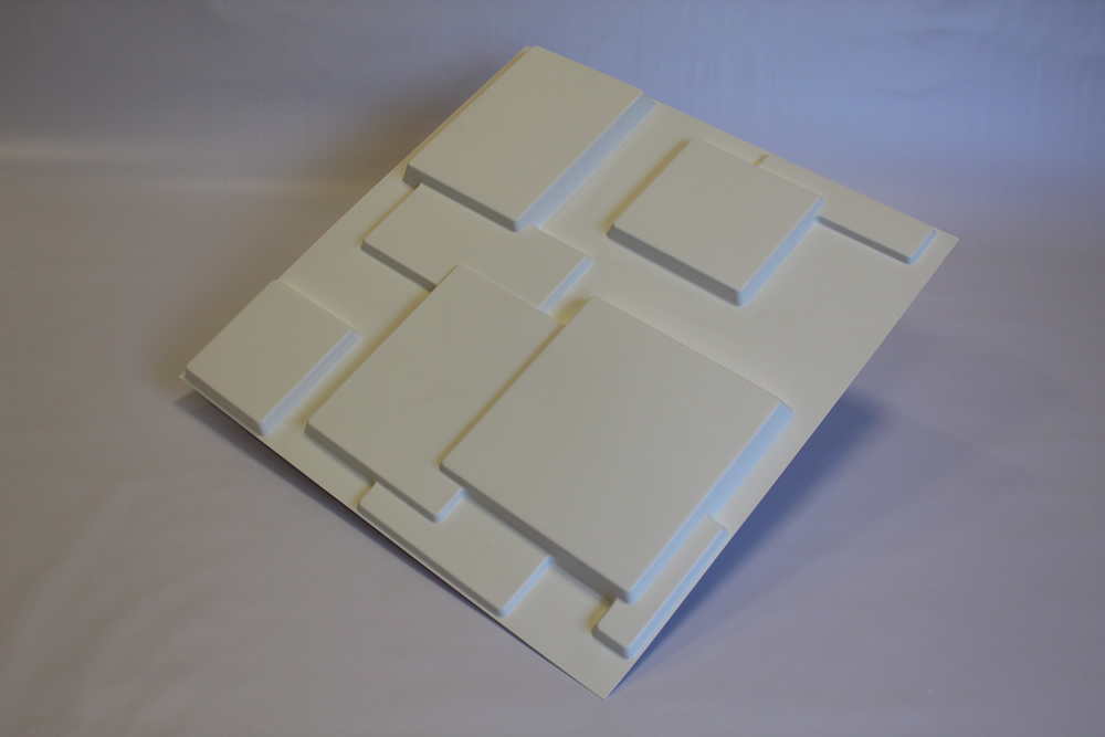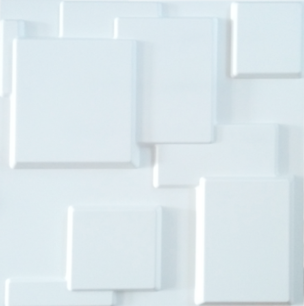 Placas de PVC 3D WALL de 50 x 50 cm para revestir paredes y cielorrasos. Livianas, resistentes, flexibles y de fácil instalación. Aptas para interiores y exteriores. En color blanco mate, listas para usar o pintar. Se adhieren con silicona pintable o adhesivo de contacto. 1 M2 = 4 placas. Cajas de 3 M2 (12 placas).